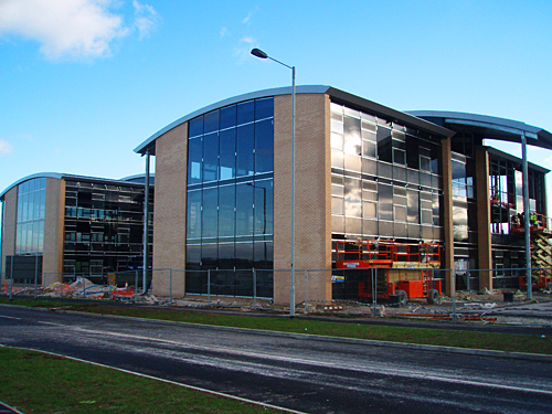 Week 30 — Cladding & curtain walling complete to both buildings.
